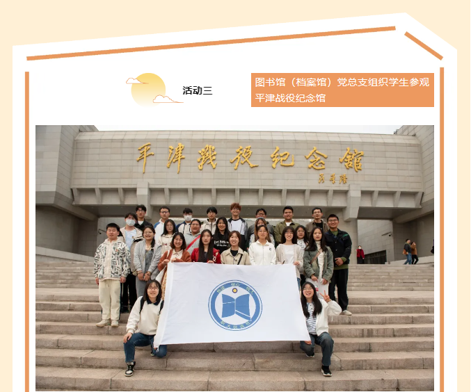 3月27日,图书馆(档案馆)党总支组织学生社团“悦读社”30余名成员参观平津战役纪念馆。实地参观研学活动,让同学们深入了解了平津战役的历史背景和重要意义,进一步激发同学们爱党爱国的巨大热情和社会责任感。同学们纷纷表示,要铭记历史、珍惜当下,为实现中华民族伟大复兴努力学习。