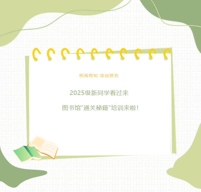 为了帮新同学快速解锁图书馆的资源检索、设备操作等难题,全方位提升文献信息资源利用能力,图书馆即将开展2025年下半年资源宣传月的新生专属培训活动!