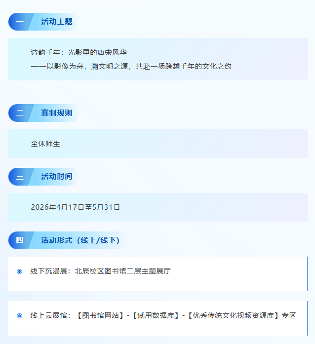 【相阅相知·4.23专题】“诗韵千年:光影里的唐宋风华”传统文化主题展活动